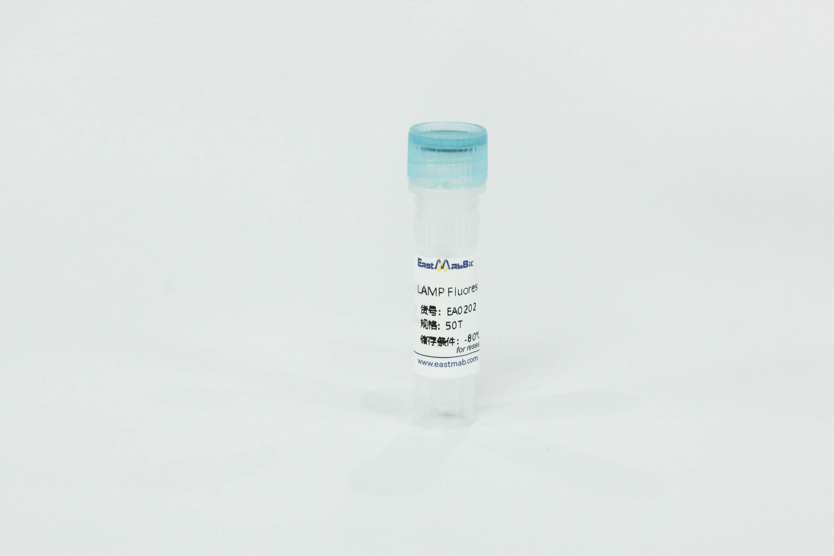 2 × LAMP Master Mix with Dye 用于模板DNA的检测,提供快速一步法的解决方案。该预混液采用Bst DNA聚合酶的优化配方,可快速地进行环介导等温扩增(LAMP)反应。该预混液包含酶Mix、dNTP、荧光染料和反应Buffer在内的所有必需组分,只需加入用于等温扩增的引物和模板,进行实时荧光检测。即可在30-50min内得到扩增结果。