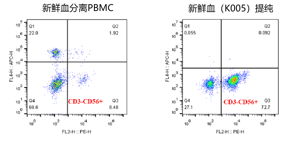 人全血起始样本: NK细胞纯度从6.48%显著提升至72.7%