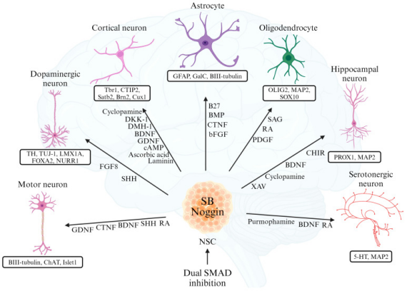 Noggin/LDN-193189B:BMP抑制剂,Noggin通过抑制BMP信号,解除对神经分化的“刹车”,是启动神经命运的经典因子。
