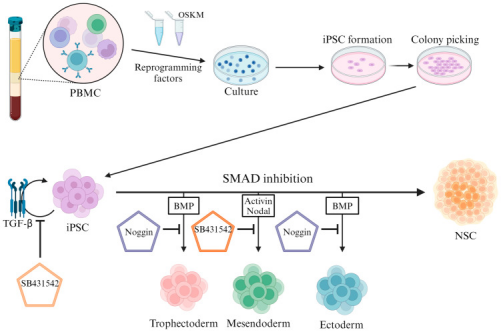 SB-431542:TGF-β/Activin A抑制剂,进一步消除非神经分化的干扰,与Noggin协同,高效地将细胞命运推向神经轨道。